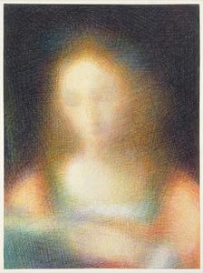 Slawomir Elsner (Wodzisław, Poland, 1976) lives and works in Berlin. He is celebrated for his refined and meticulous colored pencil drawings and watercolors that explore the interplay of light and chromatic depth. His works are built from dense, interwoven strokes – minute networks of color where no single line defines a contour. Each mark interacts with others, forming fields of light and hue rather than descriptive outlines. His distinctive hatching technique, working from light to dark, creates subtle, vibrant zones that blur the boundary between precision and softness.